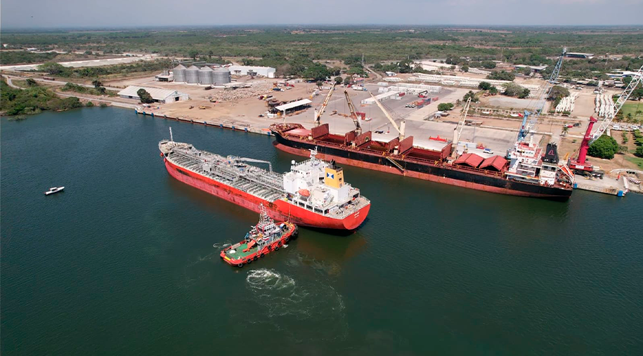 Puerto Chiapas fortalece su capacidad operativa con maniobras simultáneas de carga y descarga.